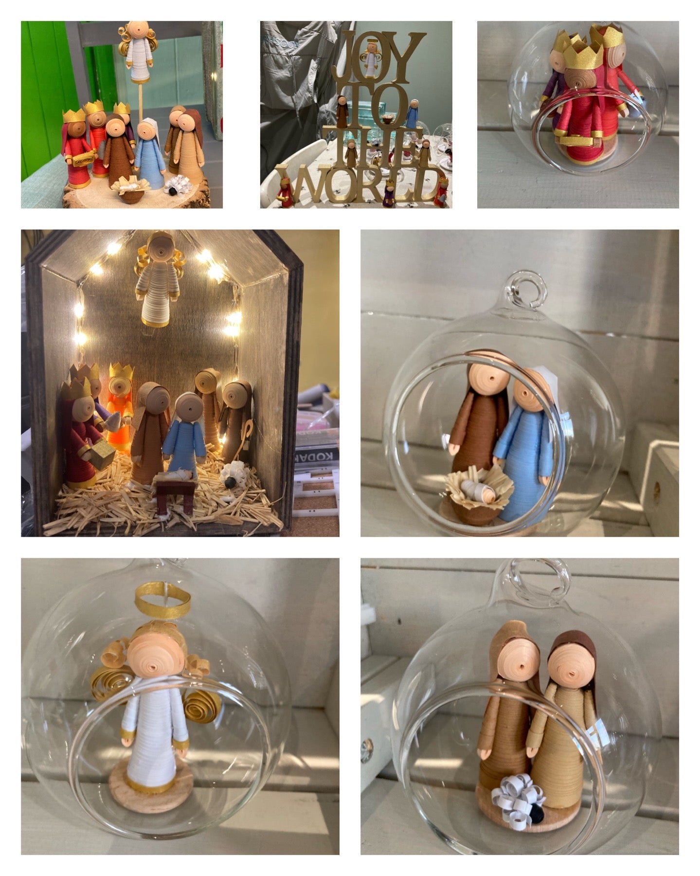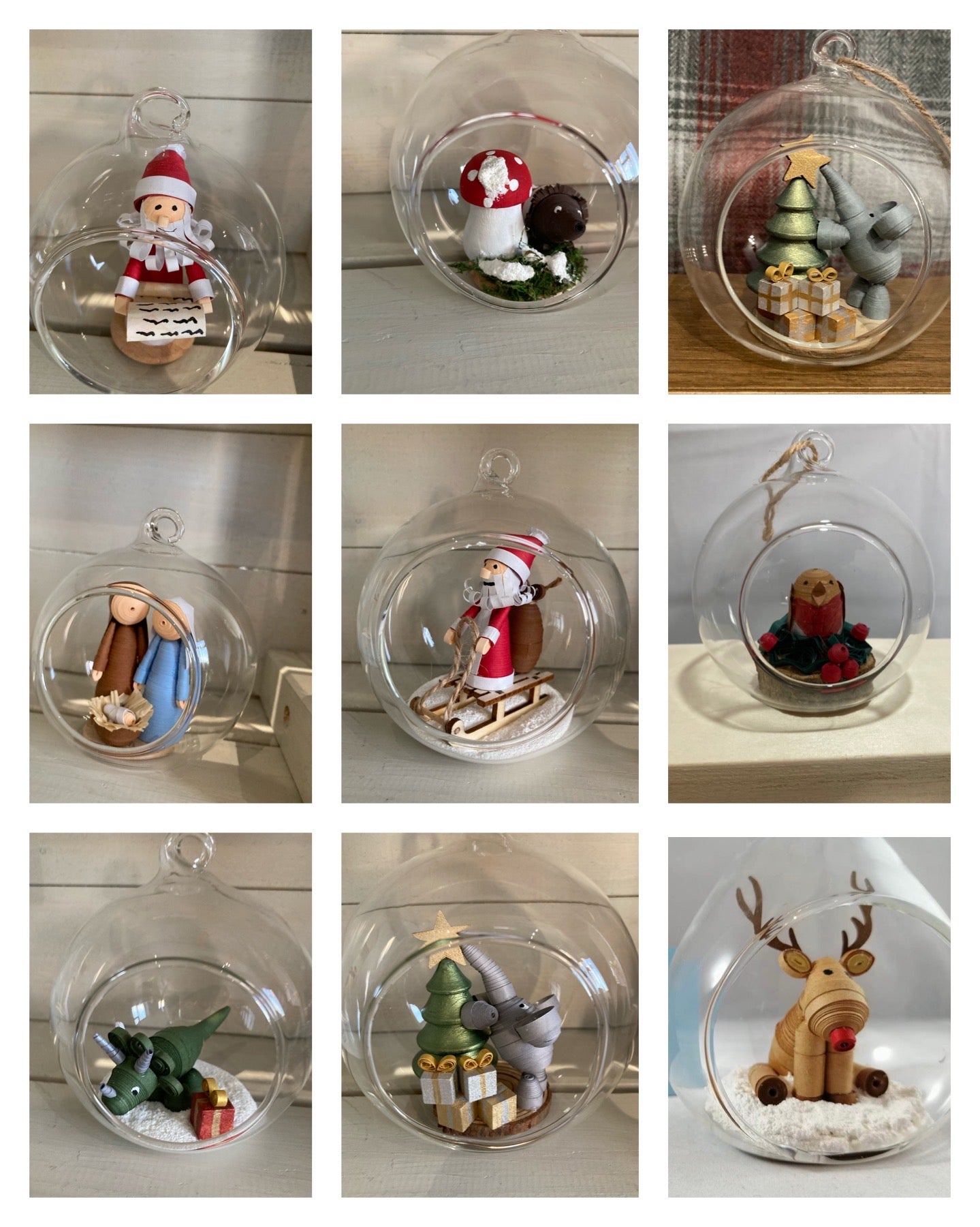 Glass bauble with handmade quilled figures inside 10cm in diameter