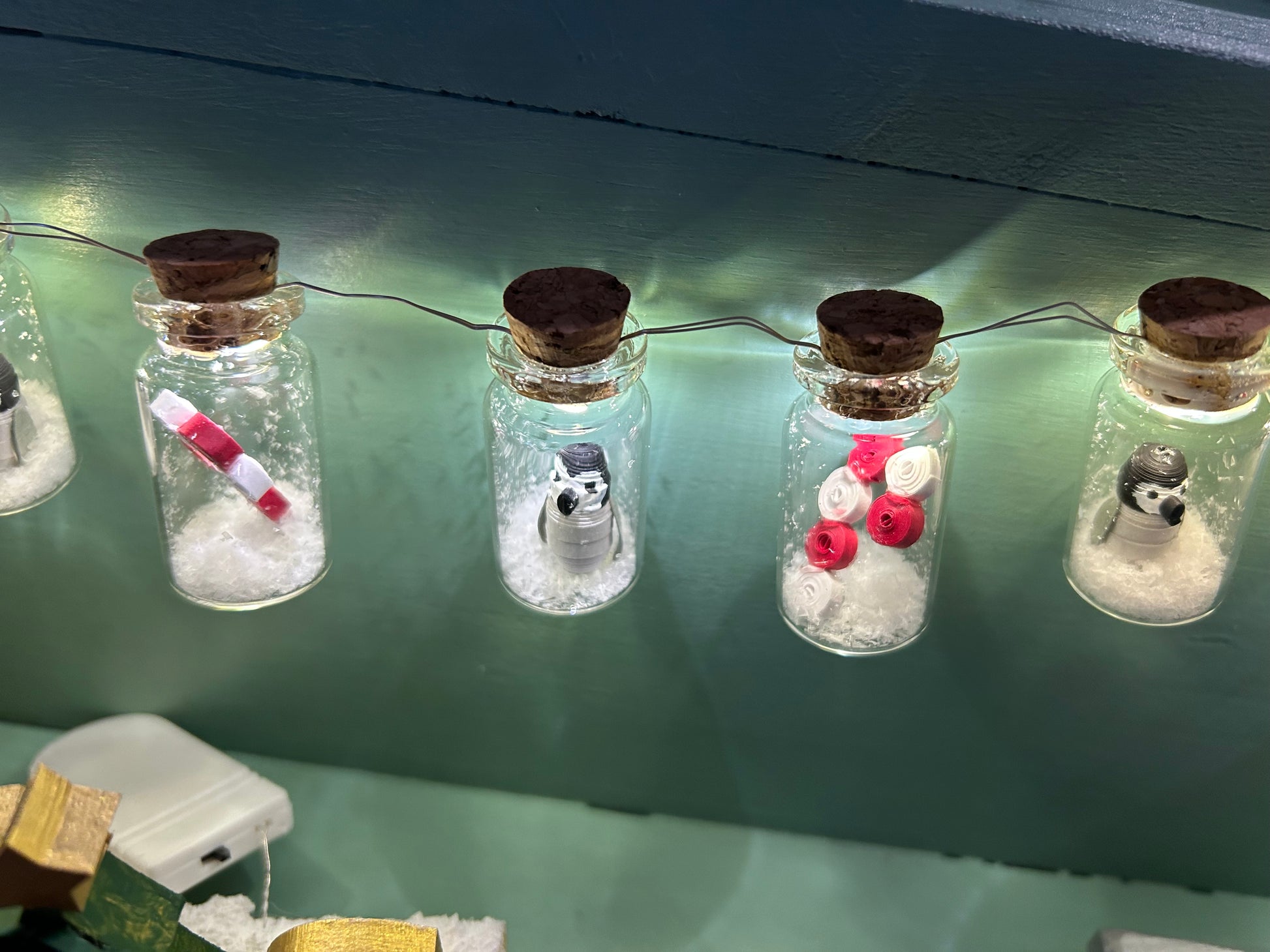 Illuminate your space with enchanting mini bottle fairy lights, each strand featuring delicate handmade quilled 3D figures nestled inside tiny corked bottles. Choose from three unique designs to match your style and create a magical ambiance. Perfect for adding whimsical charm to shelves, desks, or bedside tables, these one-of-a-kind pieces blend artisanal craftsmanship with twinkling warmth. Each light celebrates the beauty of handmade artistry, making them ideal gifts for those who appreciate creative, festive décor with a personal touch.
