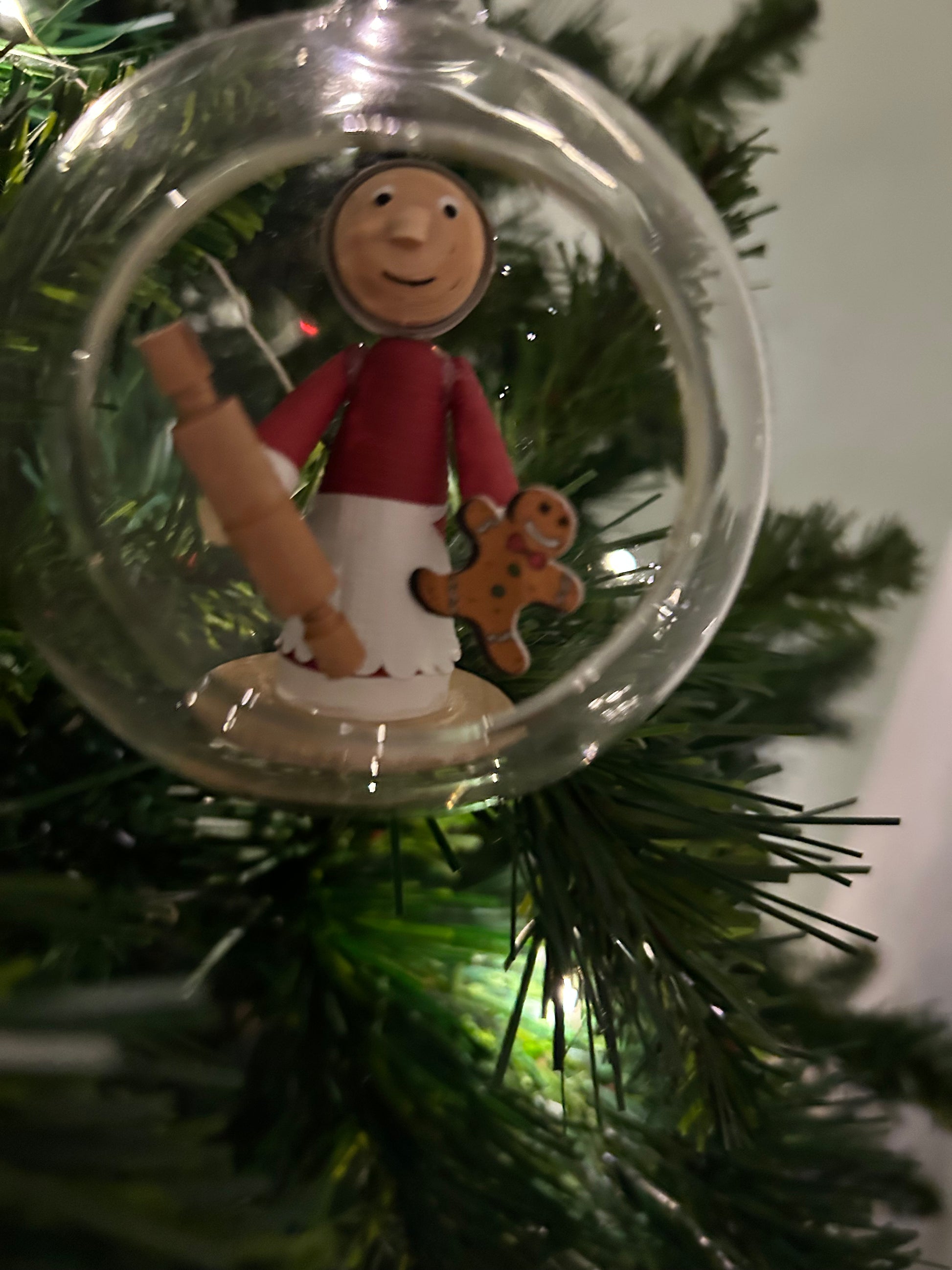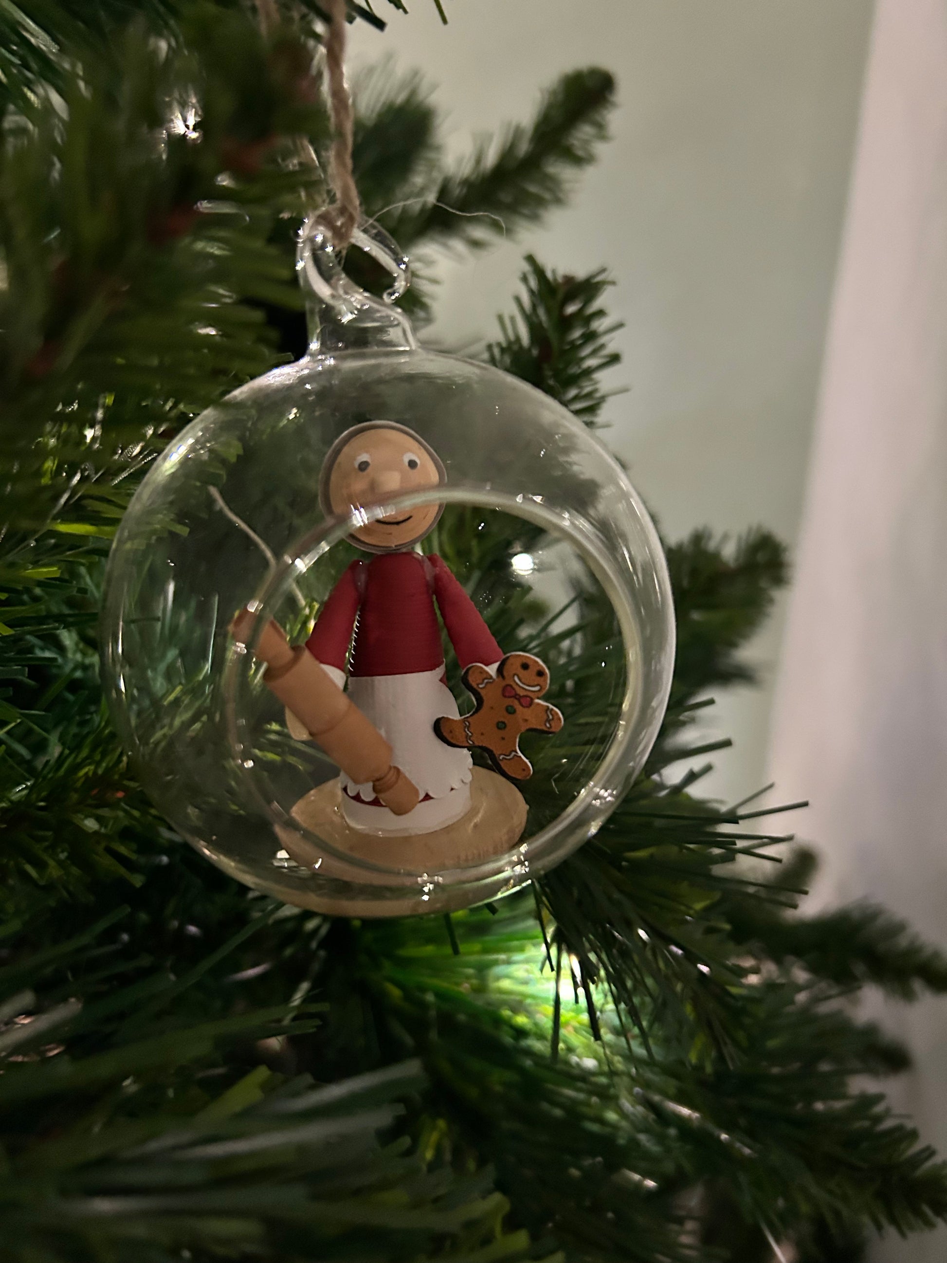 A lovely bauble featuring Mrs Claus baking gingerbread men